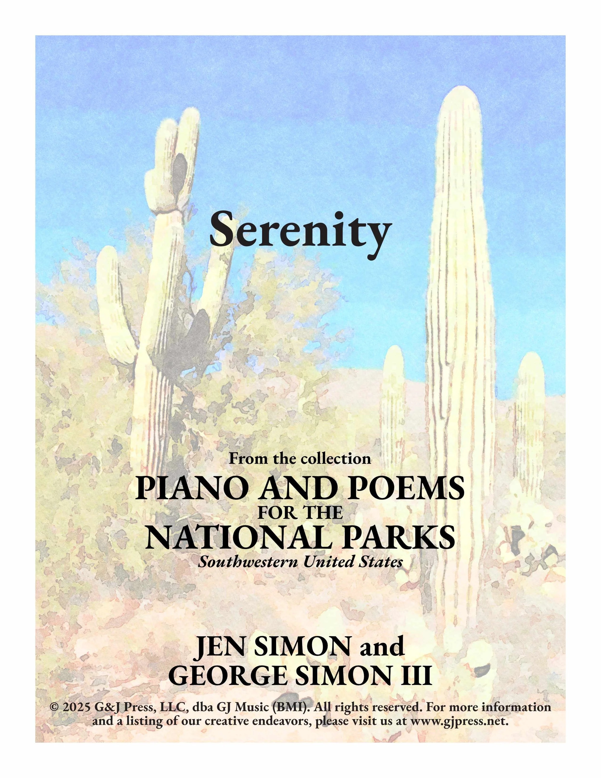 Piano and Poems for the National Parks Southwestern United States. Our book is a celebration of our national parks in their many forms and sizes. For over a century, the national parks of the United States have provided people with a space to explore, grow, learn, and be inspired. With its national parks, monuments, preserves, historic parks, memorials, seashores, and many others, our National Park system is a national treasure encompassing the natural wonders, marvels of history, and cultural expanse of our country. We are particularly inspired by the beauty of nature and its flora and fauna, and, so, we present poems and piano compositions to match our inspiration. In this first book, we have selected ten parks from the southwestern United States. We hope you are as inspired as we are by our national parks.